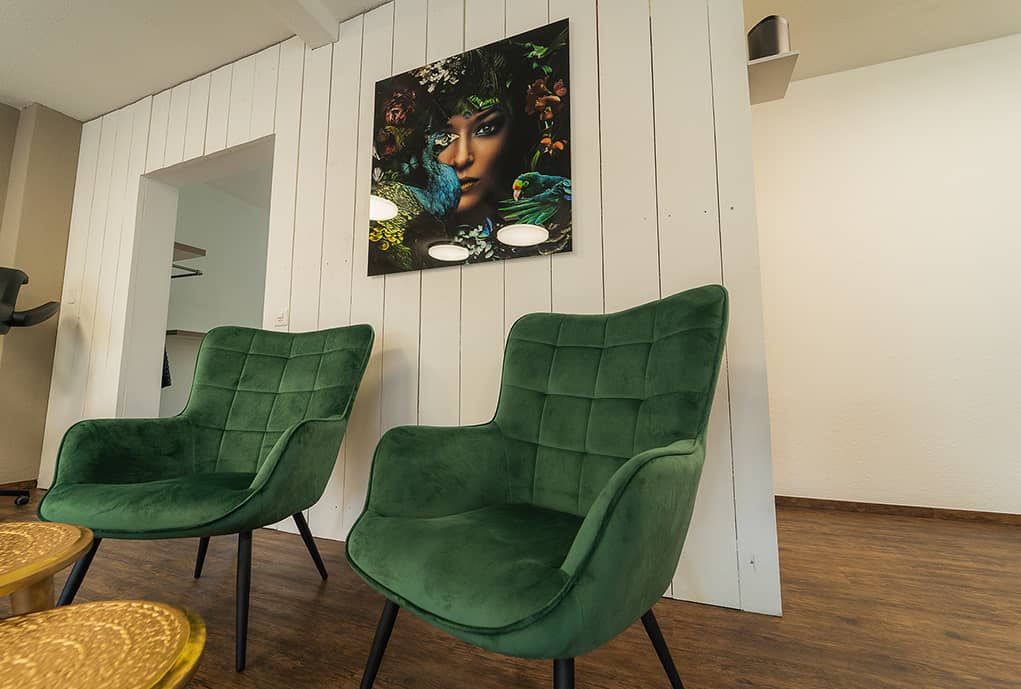Der Salon Kleopatra ist in warmen Farben gehalten, die eine angenehme Atmosphäre erzeugen. Bestimmt werden auch Sie sich hier wohlfühlen.